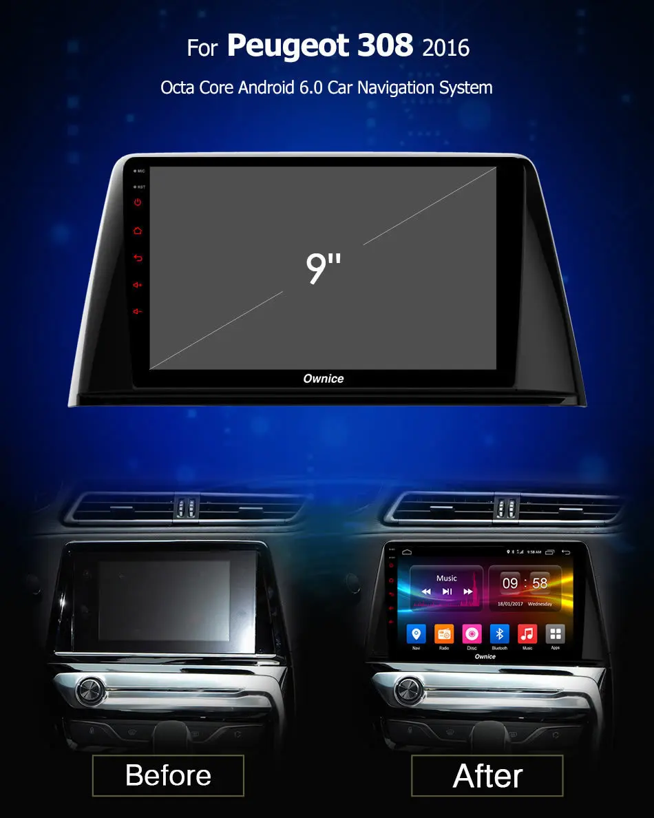 Ownice C500+ G10 2G + 32G ROM Octa Core Android 8.1 Car Radio GPS For Peugeot 308 2016 DVD Multimedia Support 4G SIM DAB+ Carplay